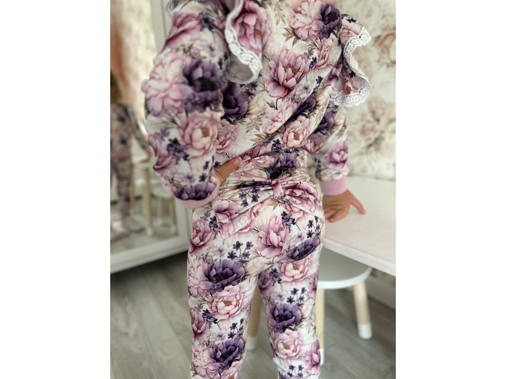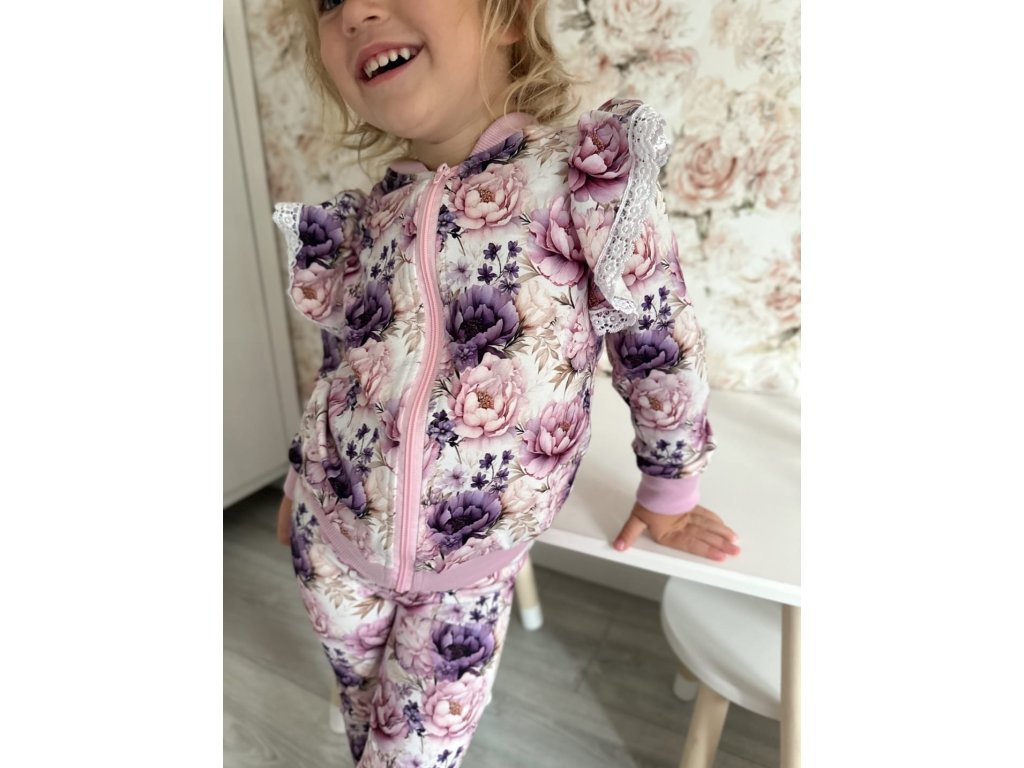- Bombera: fialová farba v kombinácii s kvetinovým motívom, zapínanie na zips, pružné lemy na rukávoch a v páse.