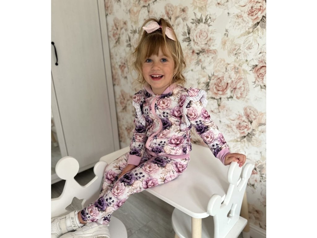 Tento dievčenský komplet spája štýlovú bomberu a pohodlné legíny s originálnym dizajnom. Oba diely sú šité z jemného a pružného materiálu, ktorý zabezpečuje komfort pri pohybe, dobrú priedušnosť a trvácnosť farebného potlačenia.