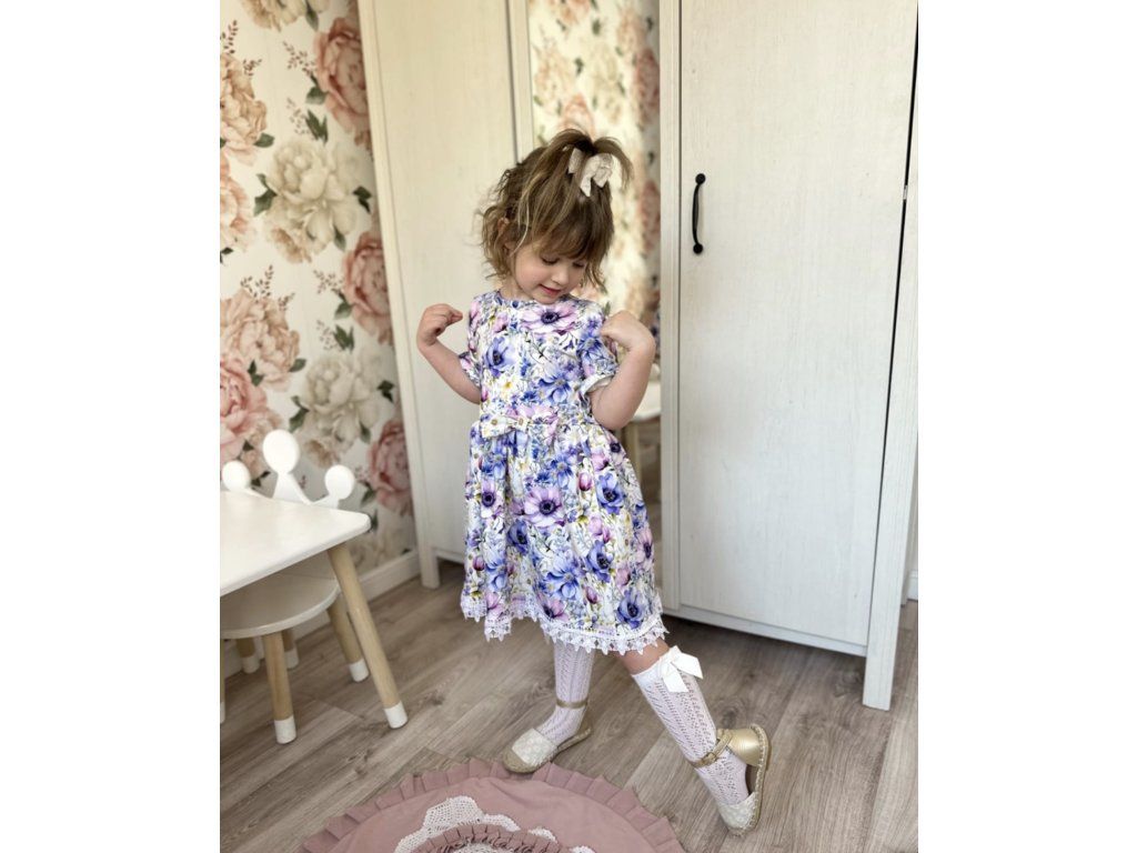 Romantické dievčenské šaty s nádherným kvetinovým vzorom sú ideálnou voľbou pre malé parádnice na každodenné nosenie aj výnimočné príležitosti. Jemné farebné tóny dopĺňa elegantný čipkový lem, ktorý dodáva šatám nežný a štýlový vzhľad.