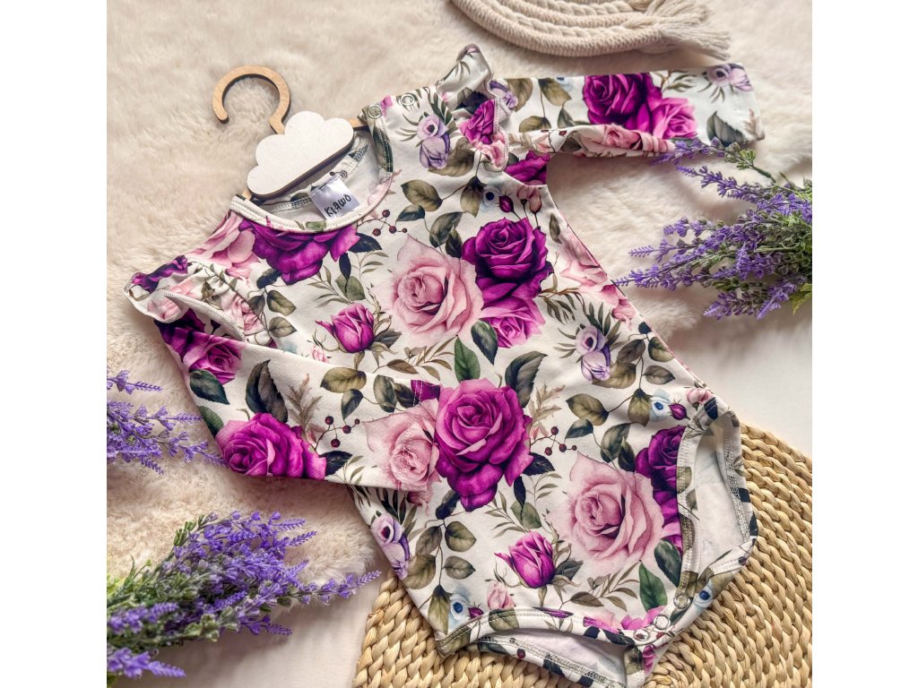 Popísané bavlnené body v krásnej amarantovej farbe, dostupné vo veľkostiach 62 až 86. Vyrobené z luxusného a príjemného materiálu, ktorý je šetrný k detskej pokožke. Zloženie materiálu je 95 % bavlna a 5 % elastan, vďaka čomu je body mäkké, pružné a pohodlné na každodenné nosenie.