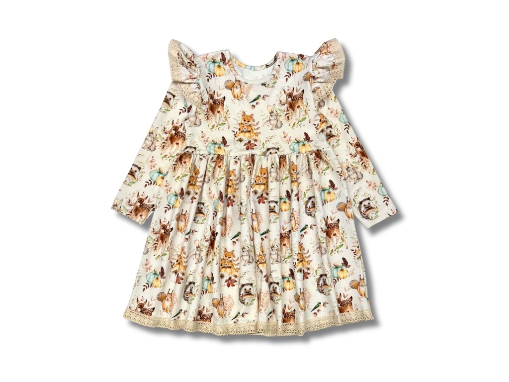 Šaty s dlhým rukávom – motív lesných zvieratiek