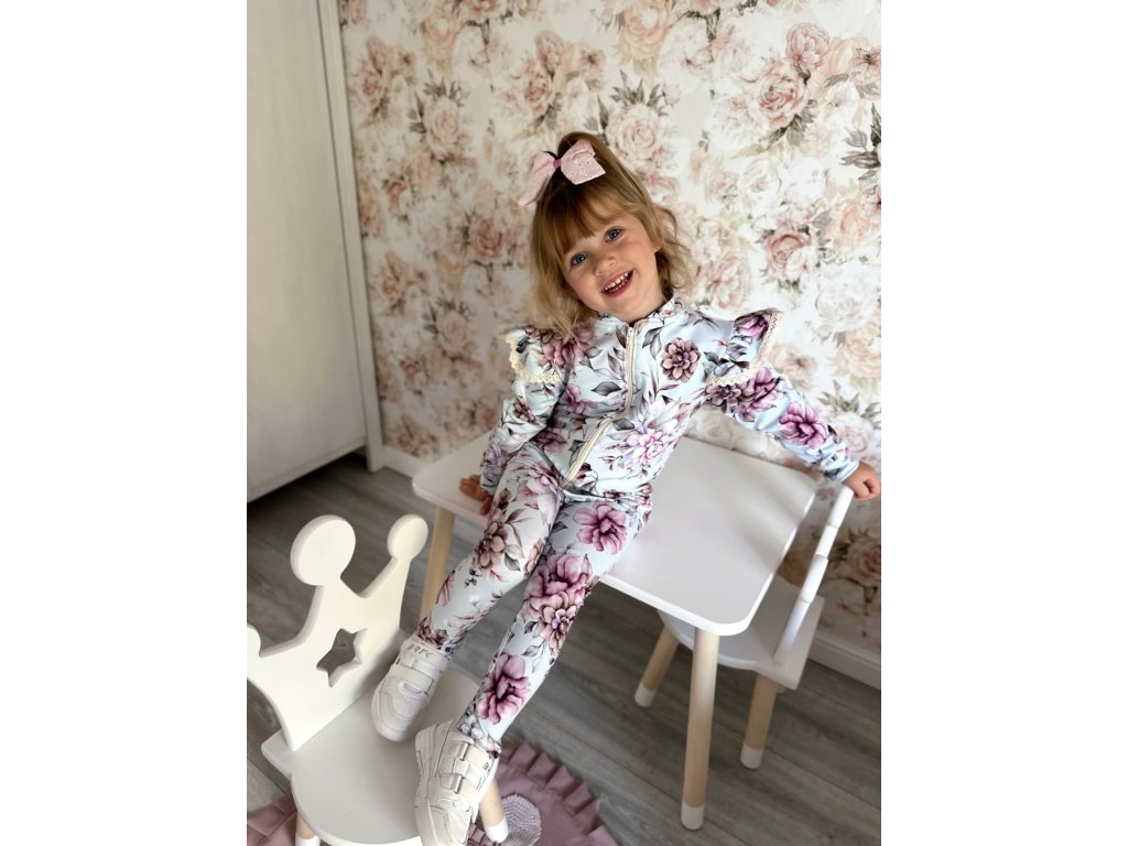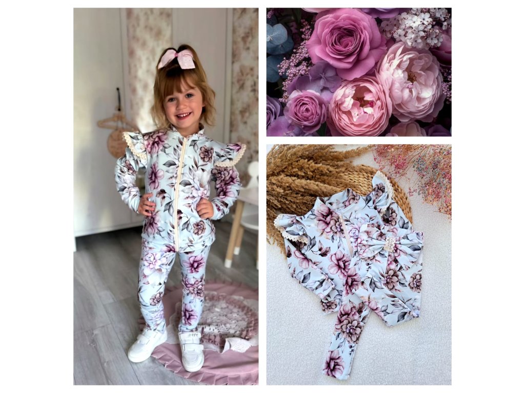 Originálny set, ktorý si zamilujete! Tento štýlový kvetovaný bomber a pohodlné legíny s ozdobnou mašličkou tvoria dokonalú kombináciu pohodlia a jedinečného dizajnu.