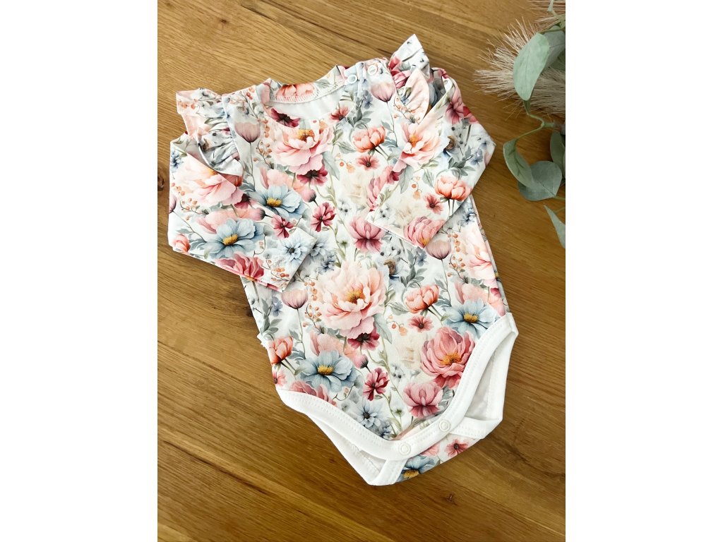 Kvetinový vzor v jemných prírodných odtieňoch rozžiari každý deň a dodá deťom nežný, veselý vzhľad.