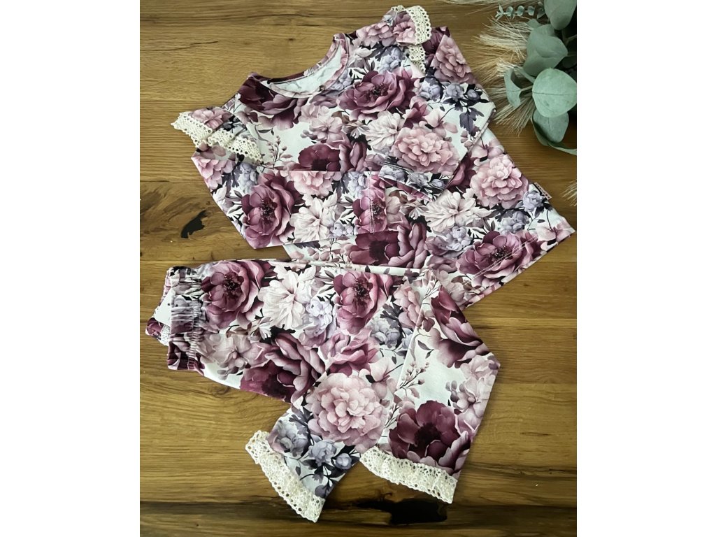 Kvetovaný dievčenský komplet je ideálnou voľbou pre malé parádnice, ktoré milujú pohodlie aj štýl. Komplet tvorí tričko s veselým kvetinovým vzorom a legíny so štipkou dole na nohaviciach, ktorá dodáva moderný a hravý vzhľad.