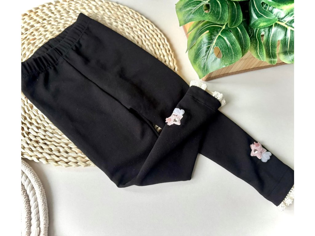 Zateplené legíny čierne s čipkou a vzorom
