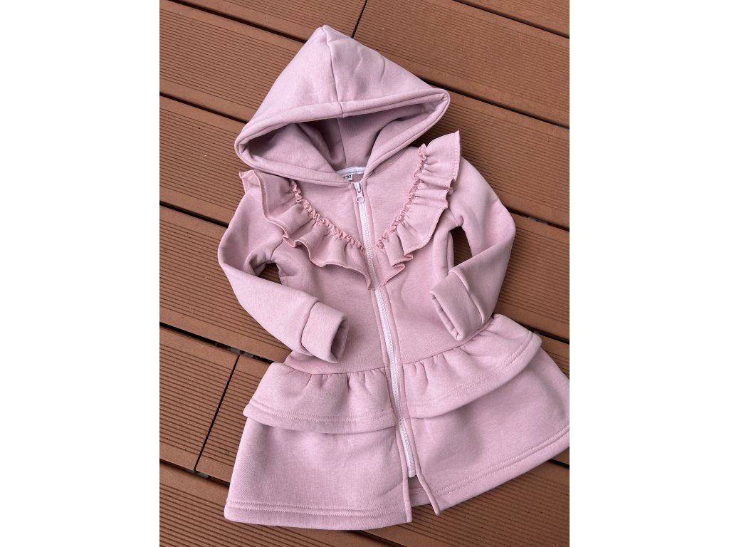 Tento rozkošný kabátik v jemnej slaboružovej farbe krásne obopne postavu dieťaťa, vďaka čomu pôsobí elegantne a zároveň pohodlne. Je vyrobený zo zatepleného materiálu, ktorý poskytuje výbornú tepelnú izoláciu, takže sa hodí aj do chladnejších dní.